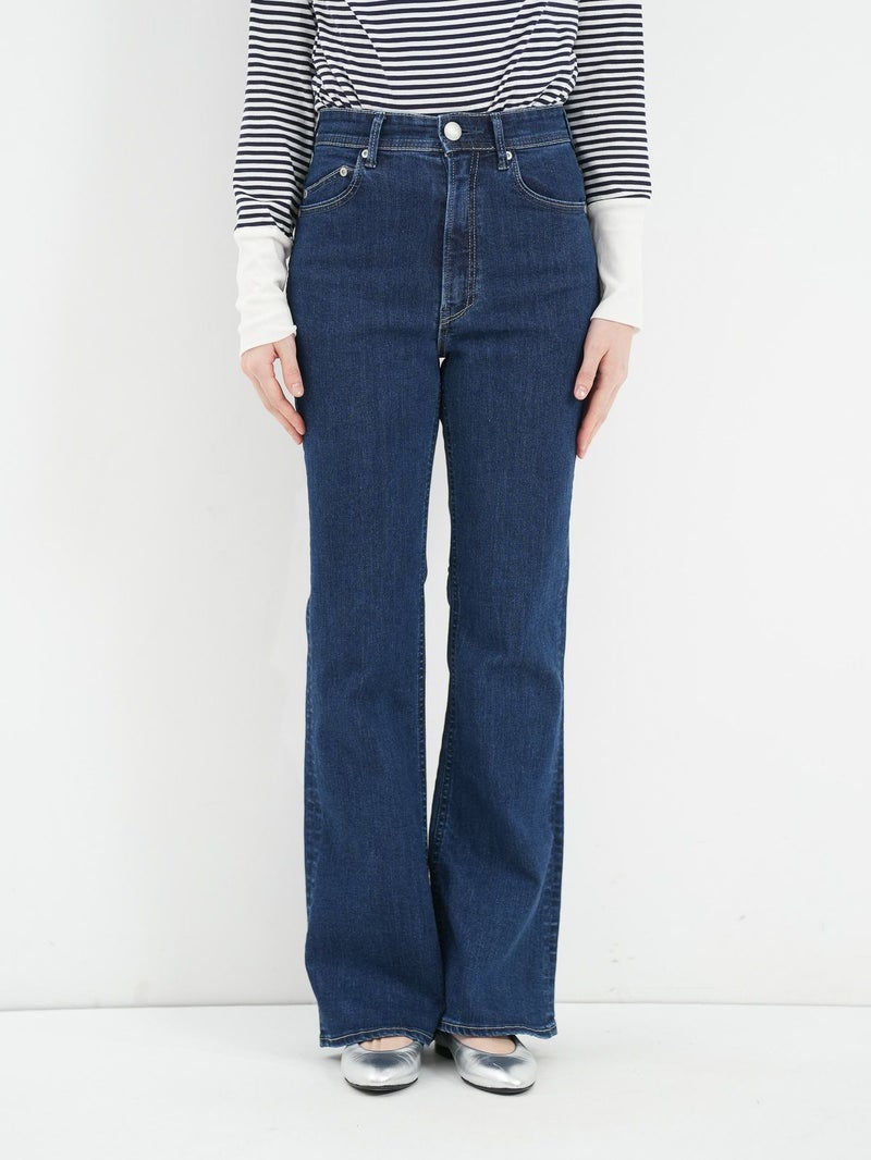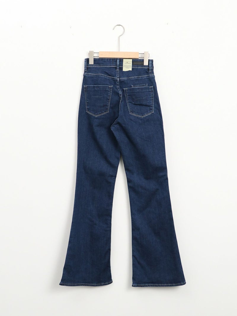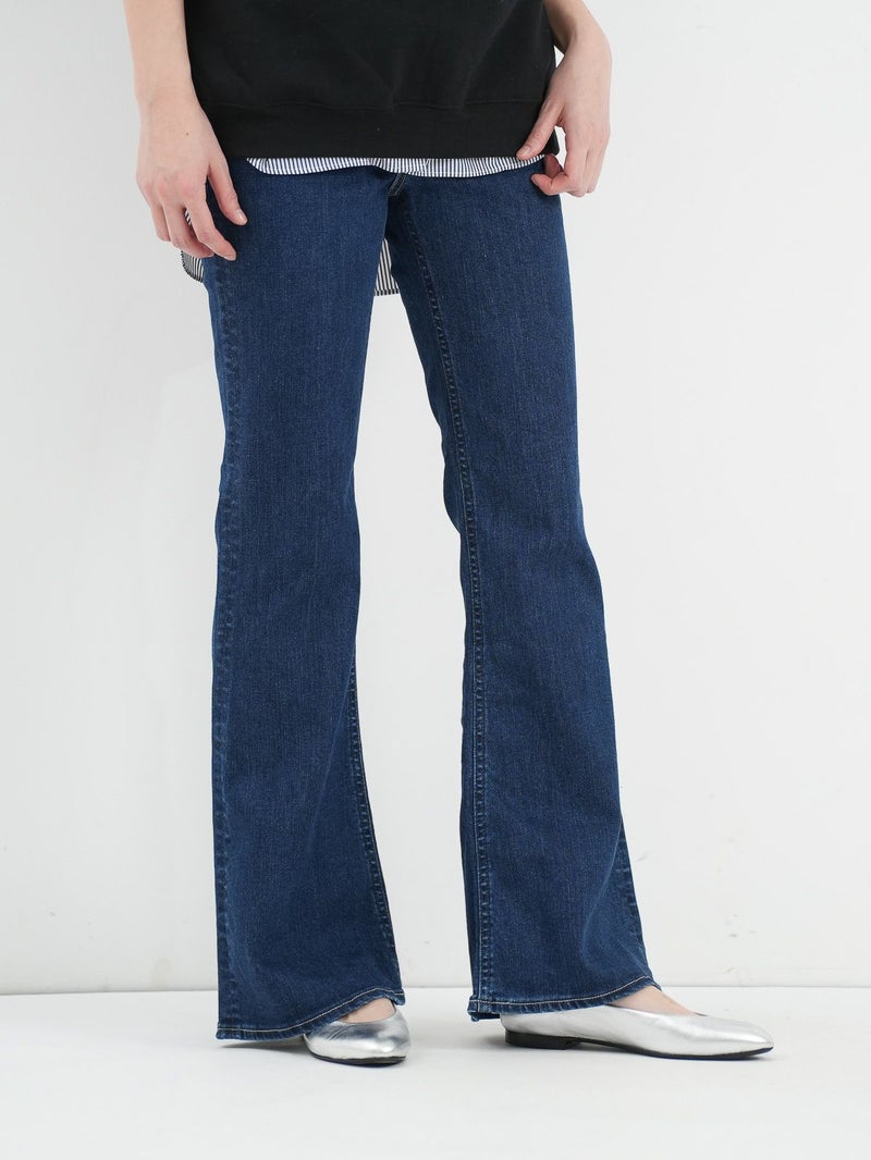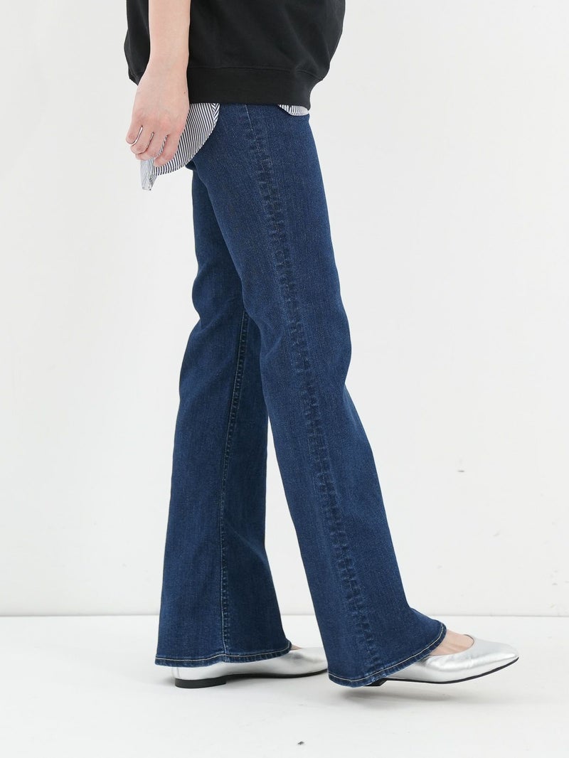 脚のラインをきれいに見せくれるブーツカットシルエットのデニム。 膝位置が高めなので、裾に向かってなだらかに広がるフレアラインが自然なスタイルアップを演出してくれます。ハイウエスト仕様で、トップスをインした着こなしもすっきり決まるのも◎