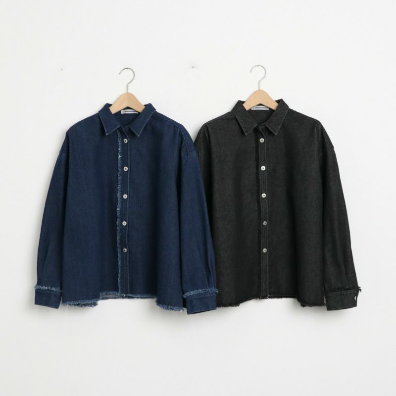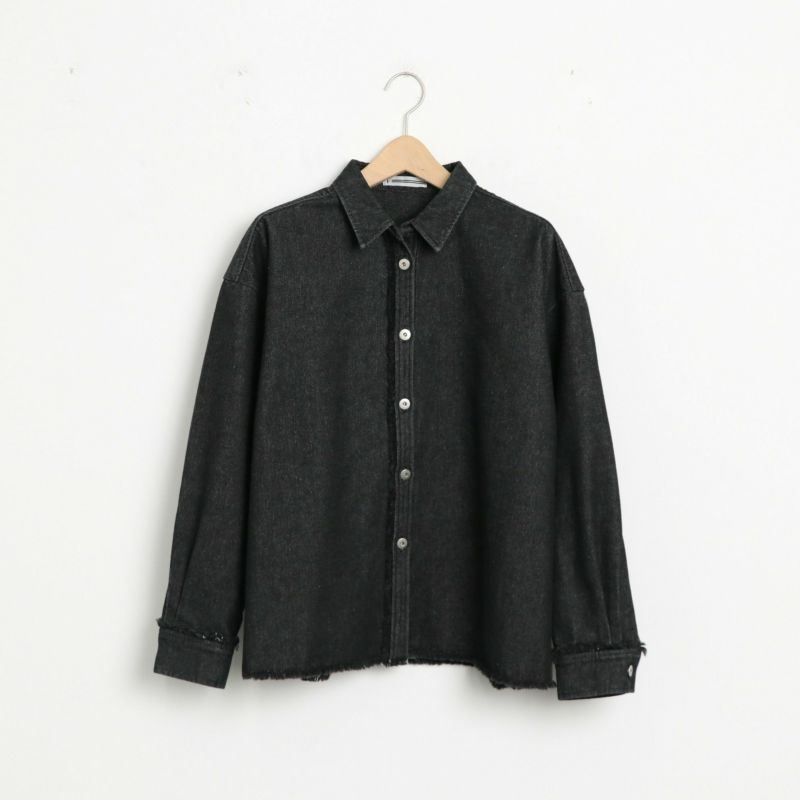 カットオフデザインがポイントのデニムシャツ。 きれいめなスタイルにもあうシンプルなデザイン。 さらっと羽織れるルーズシルエットに、Gジャンにもつかわれるネオバボタンを使用することにより、シャツジャケットっぽくコーディネートできます。