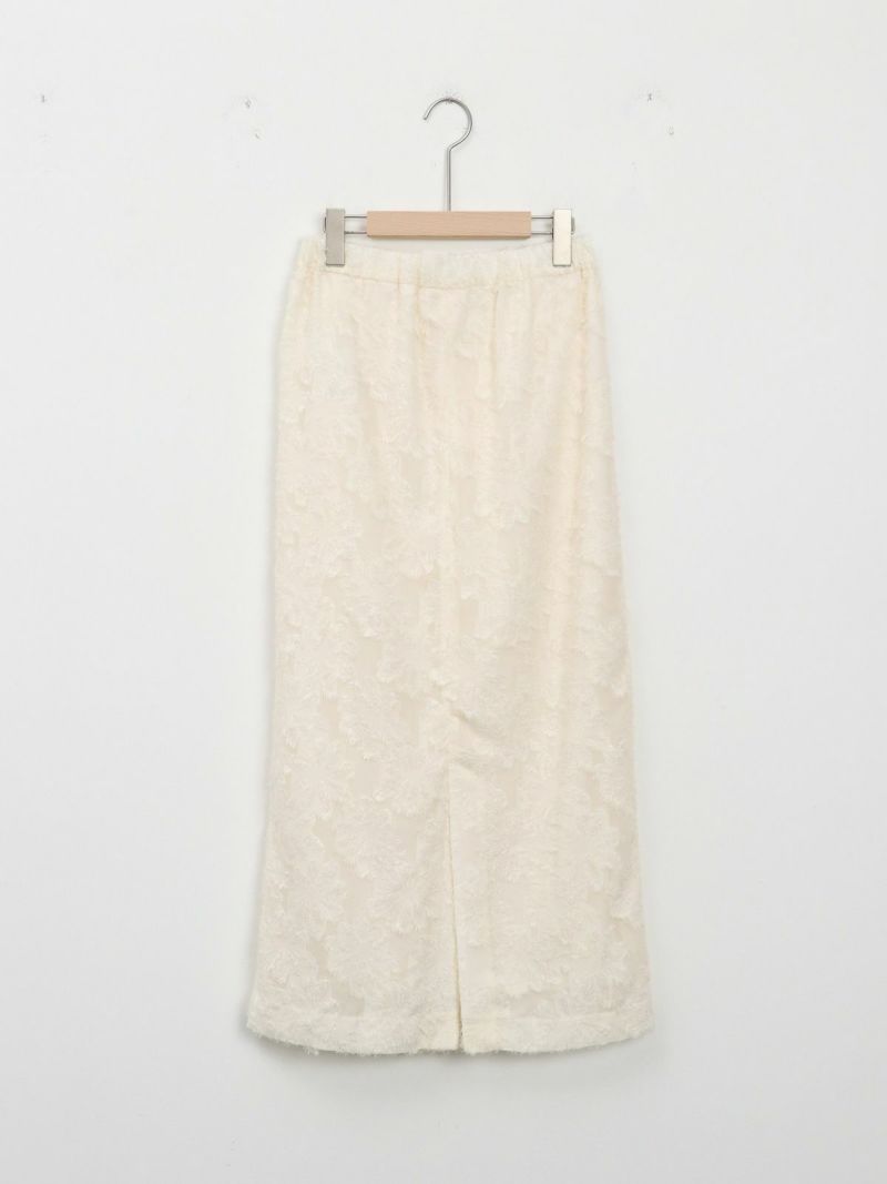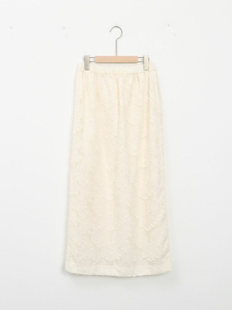 大きめのフラワー柄が目を惹くジャガードスカート。 ストレートシルエットでコーディネートしやすいデザインです! ウエストゴムでストレスフリーな履き心地も嬉しいポイント♩ 単品使いはもちろん、同素材で作ったブラウスとのセットアップスタイルもおすすめです◎