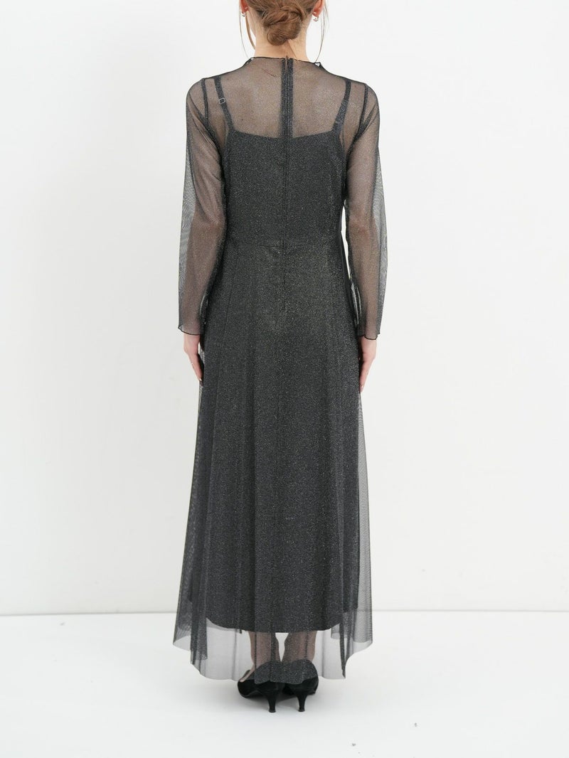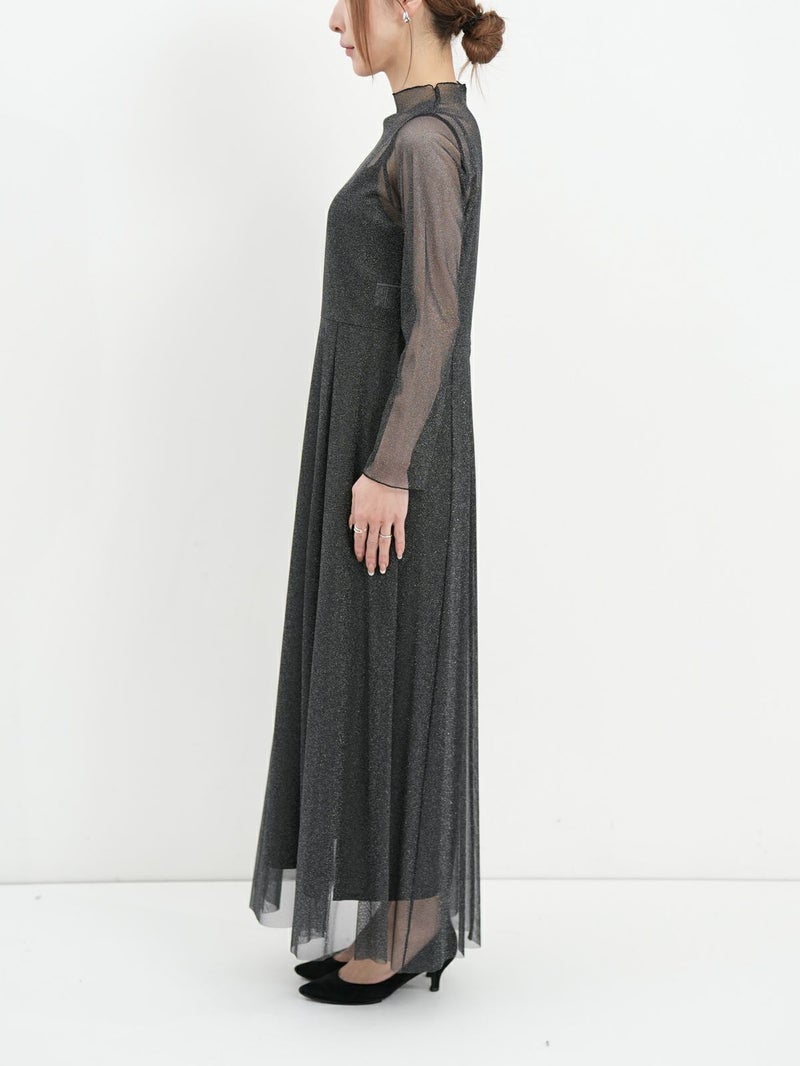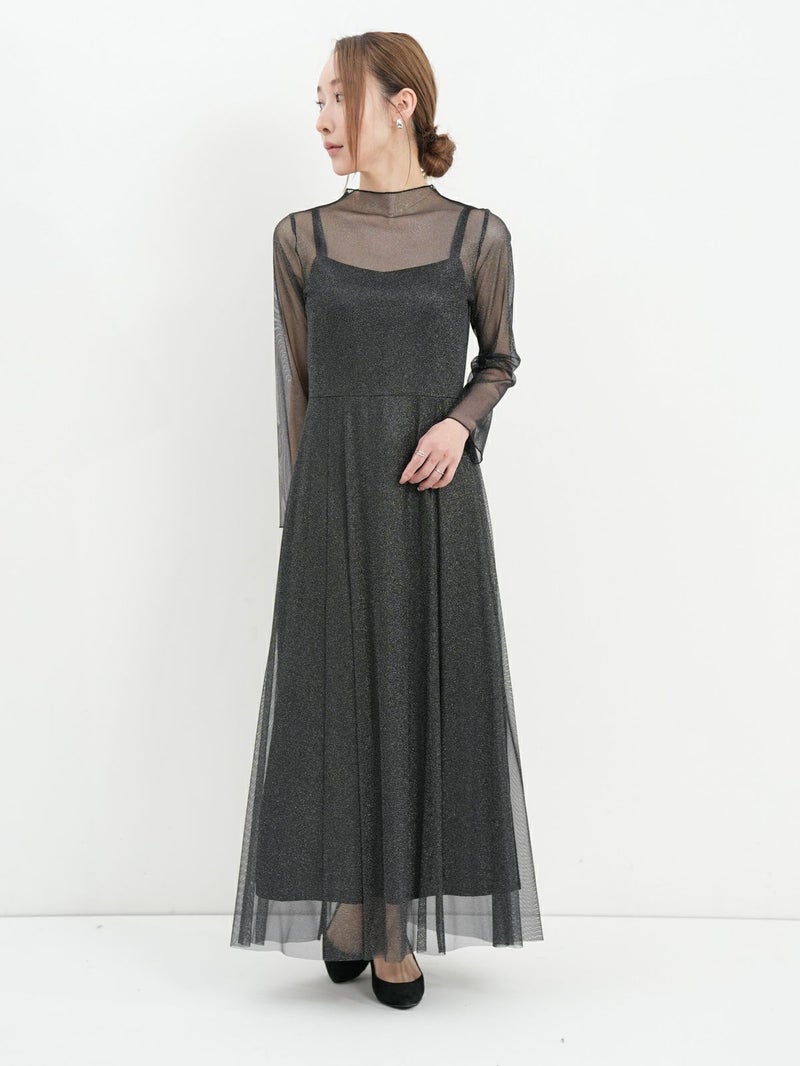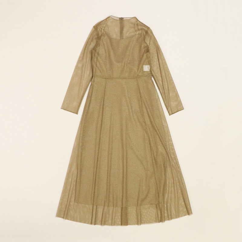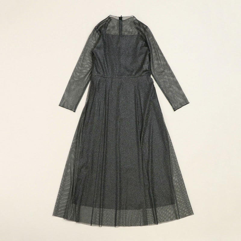 襟ぐりのメロウ加工とすっきりとしたフレアースカートのボリューム感が甘すぎない、大人のチュールワンピース。 さりげないラメ素材は伸縮性が良く、肌触りの良いワンランク上の日本製チュールを使用。食事会などのセミフォーマルなシーンでもオススメです。