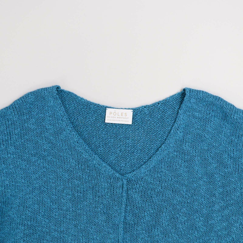 MAISON MONTAGUTのVネックトップス。 コットンの心地良い快適さとリネンの洗練された軽さが特徴。 定番のワードローブとして、1着は持っておきたいアイテムです。