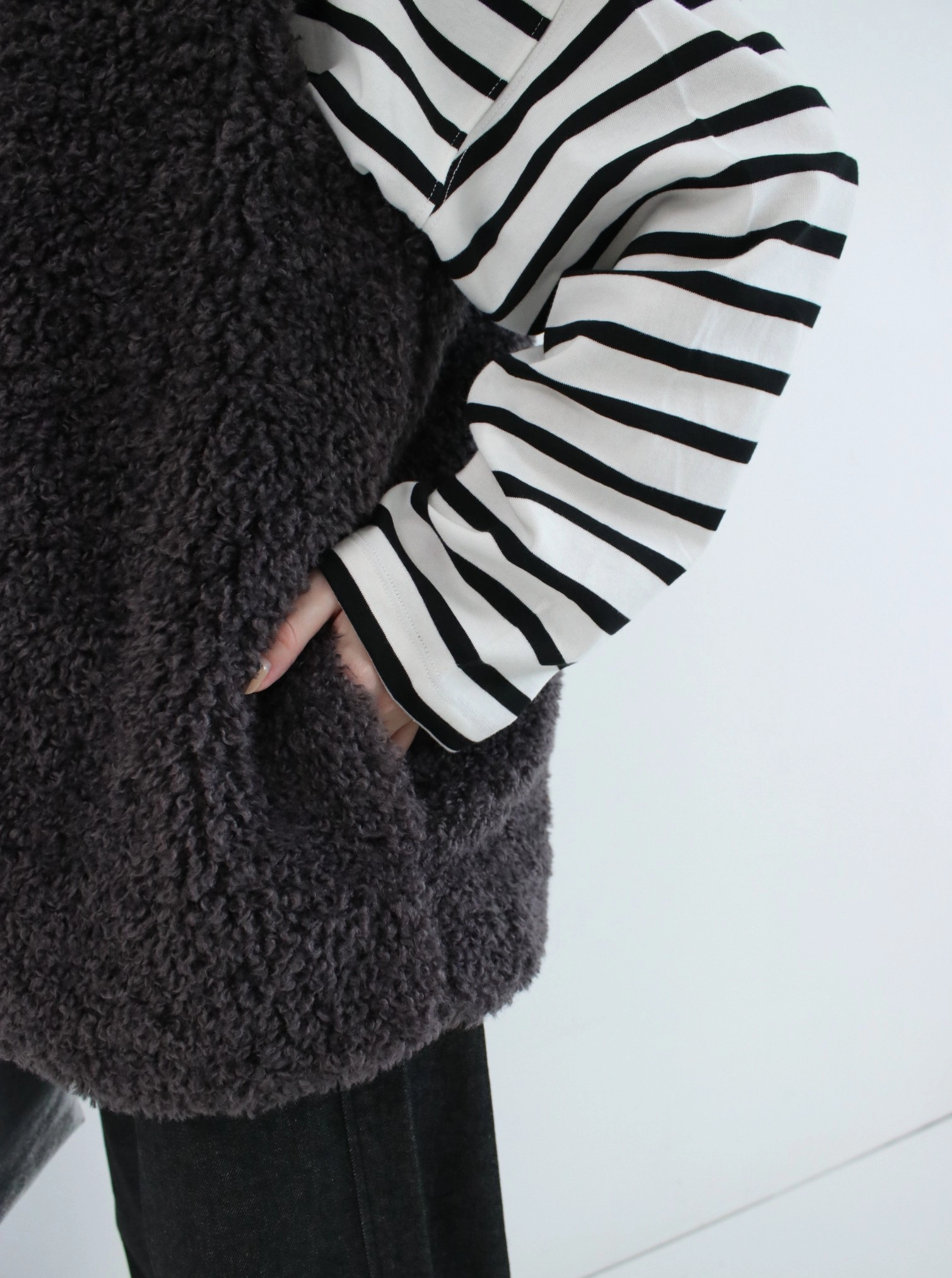 ふわふわなプードルファーが目を惹く、シーズンムードたっぷりのベスト。