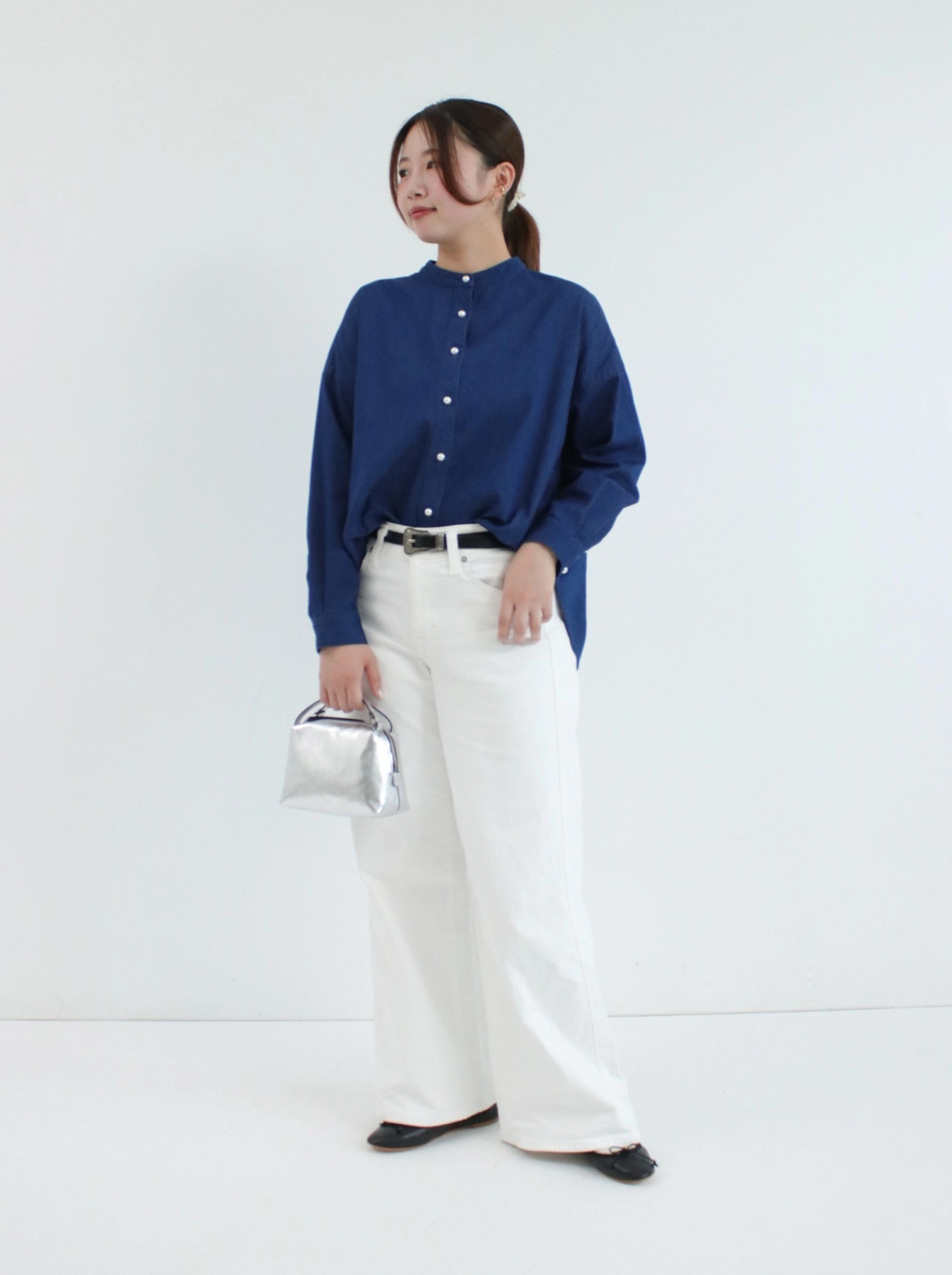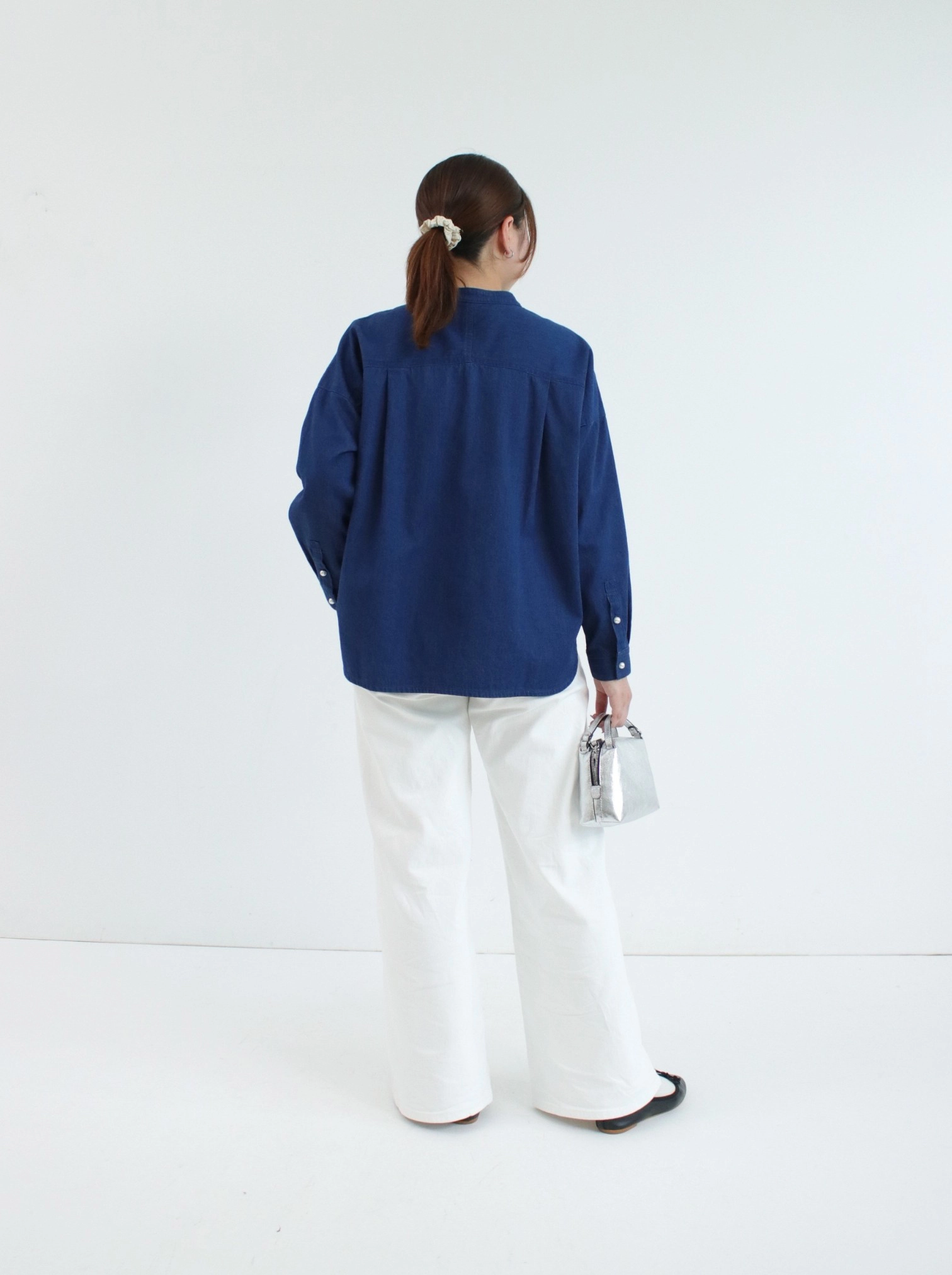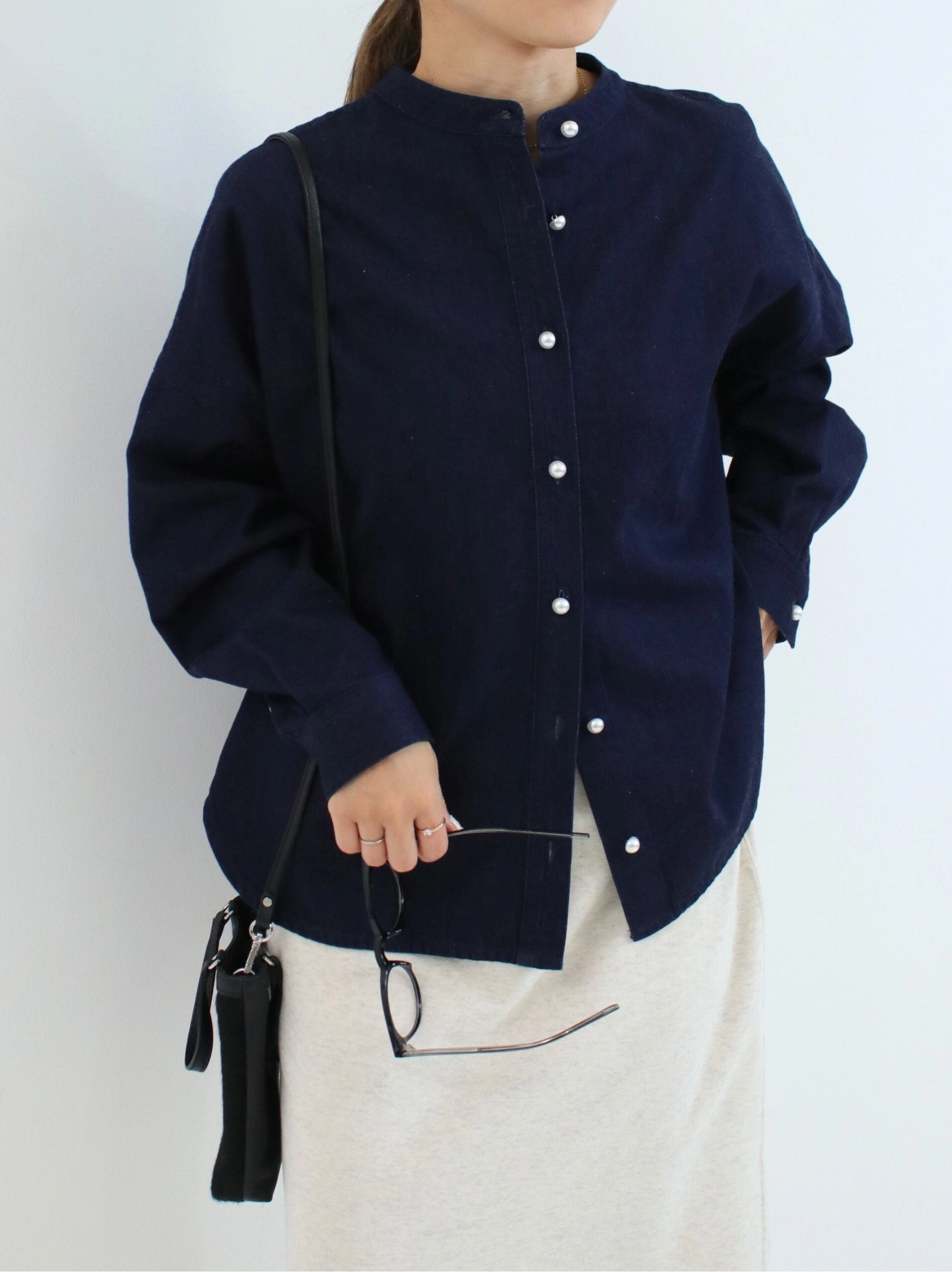 1枚で着用するのはもちろん、羽織としても活躍するためロングシーズン着用可能です。 首元はバンドカラーですっきりとしたシンプルなデザイン。柔らかな着心地も嬉しいポイントです♪