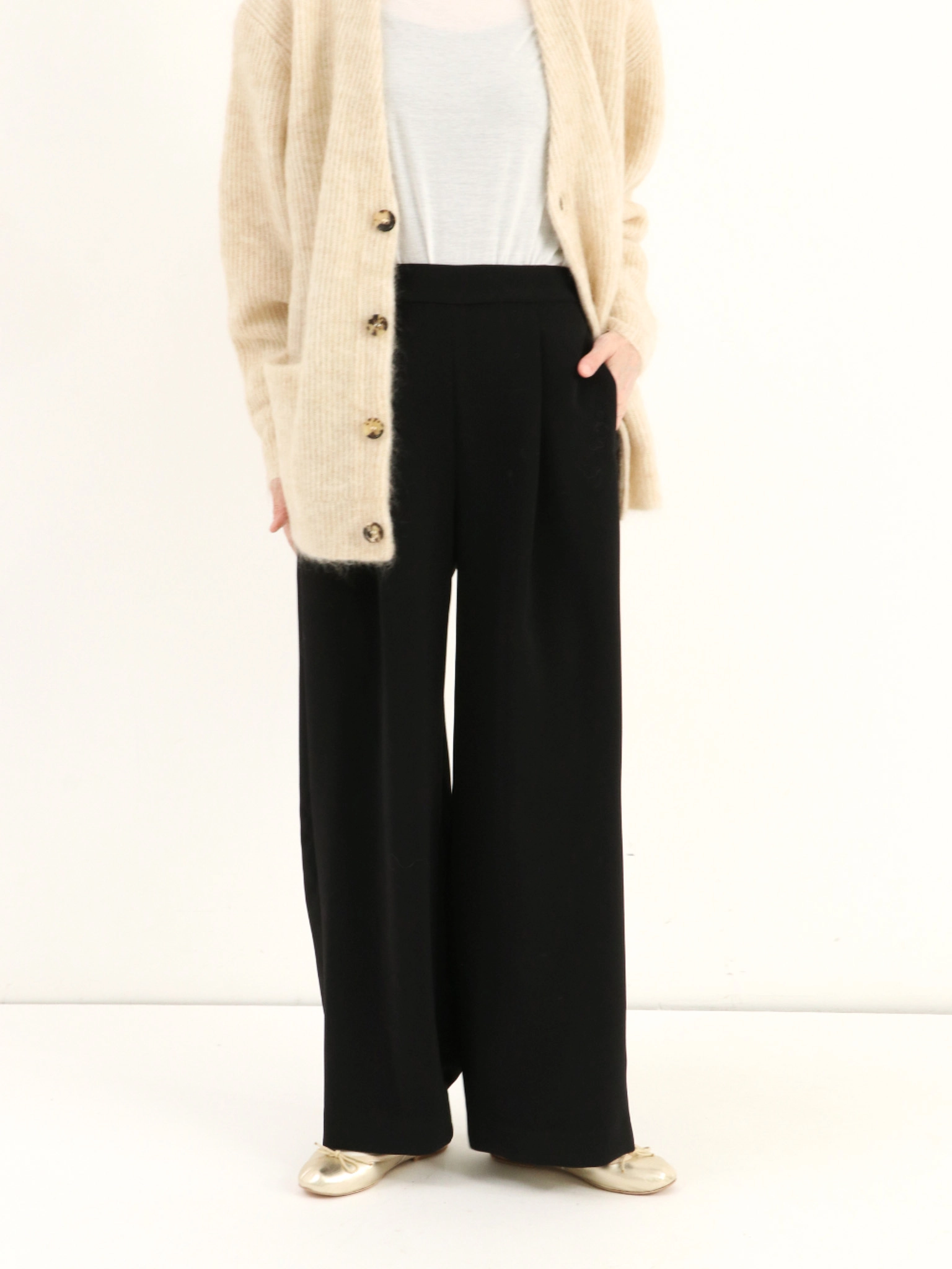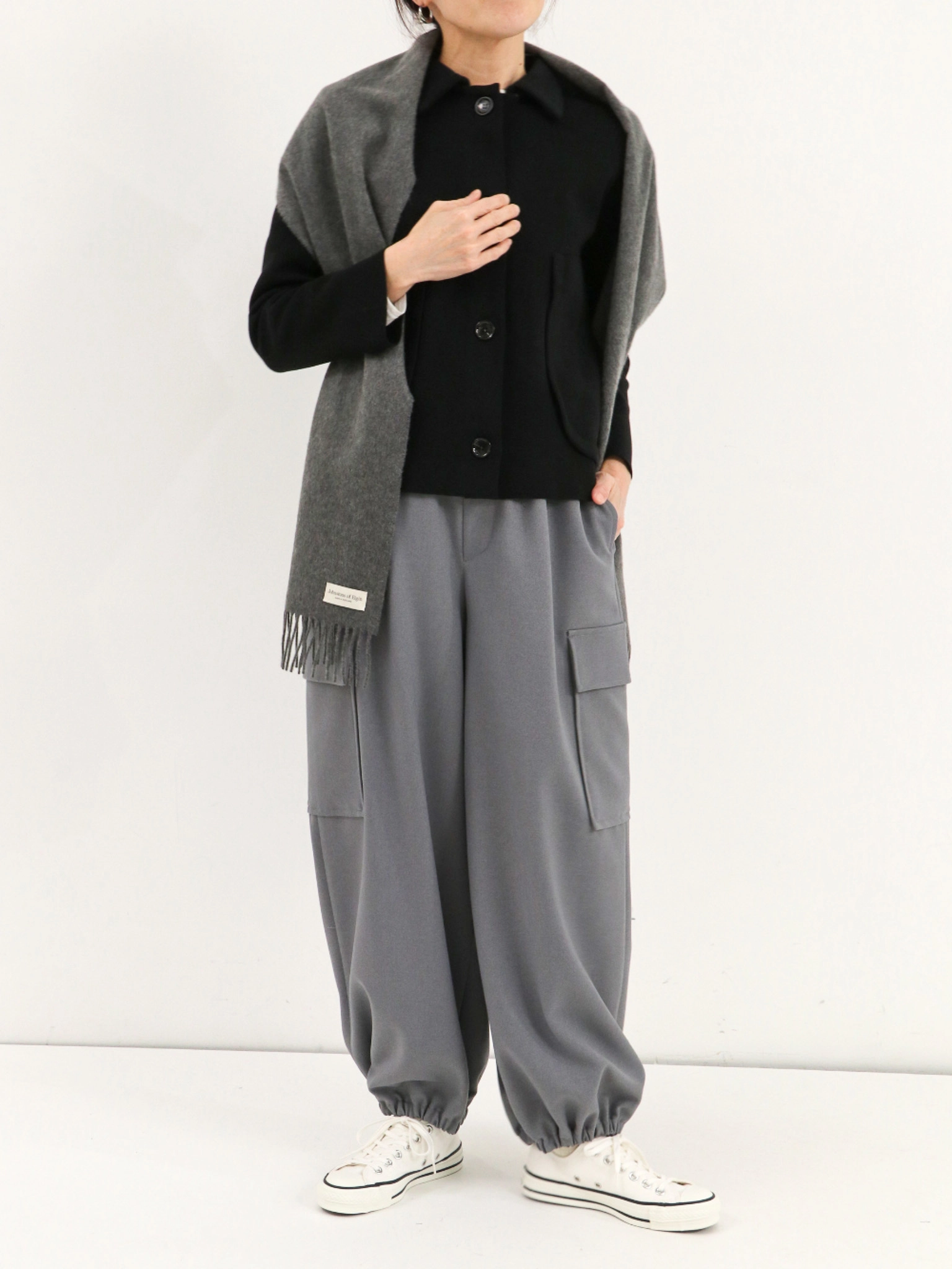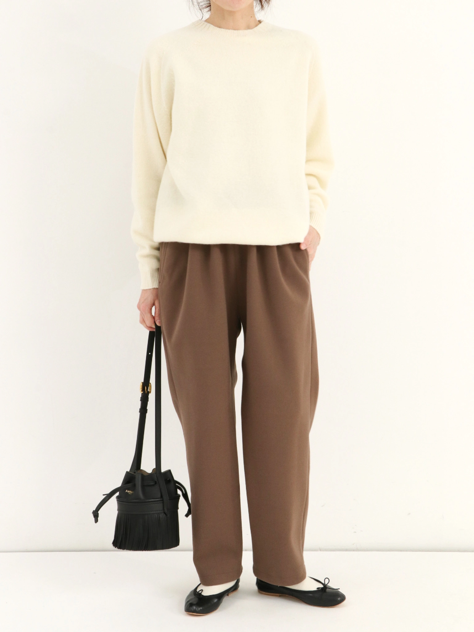 春夏に人気だったタックワイドパンツの、秋冬仕様が登場。