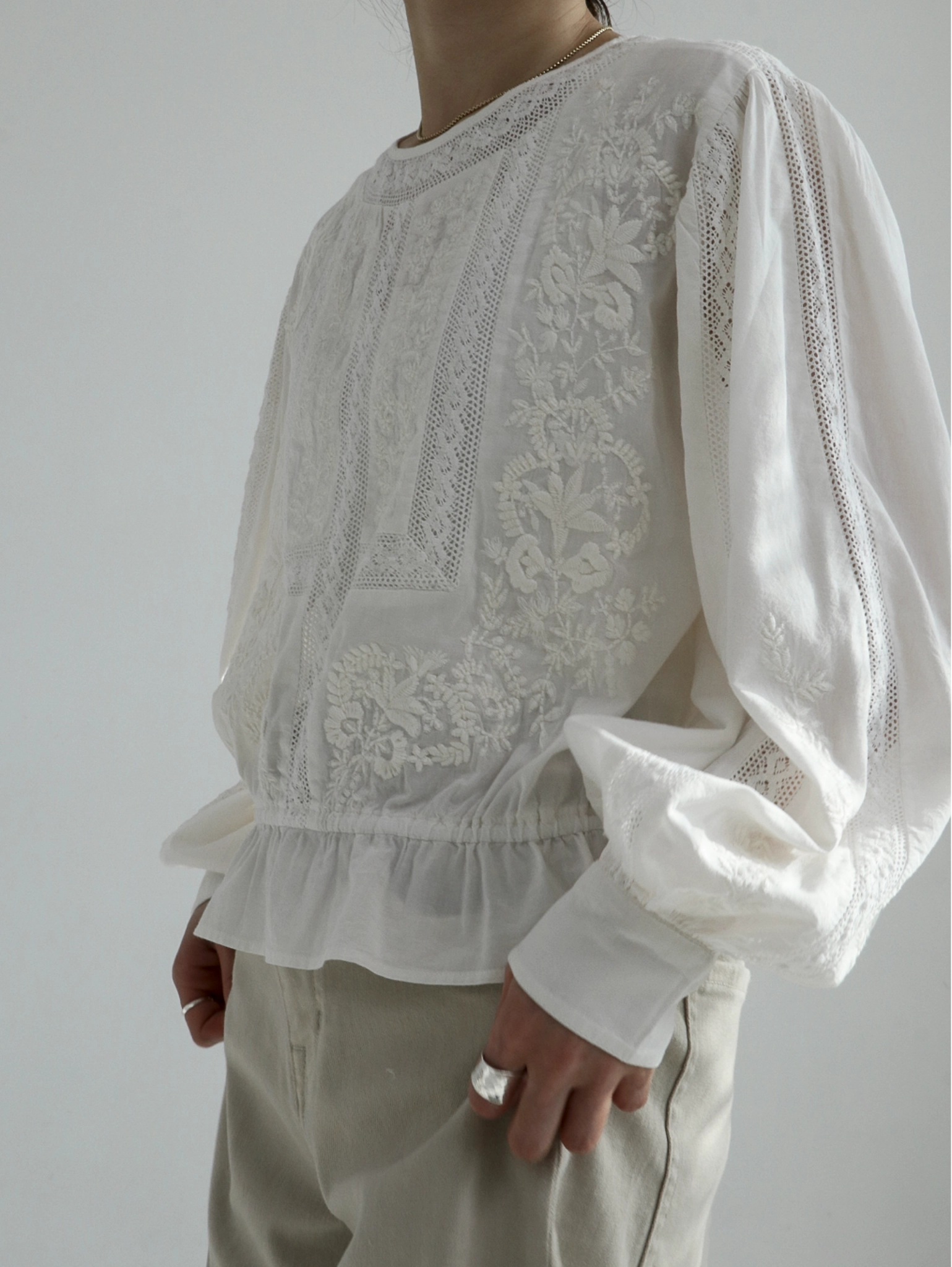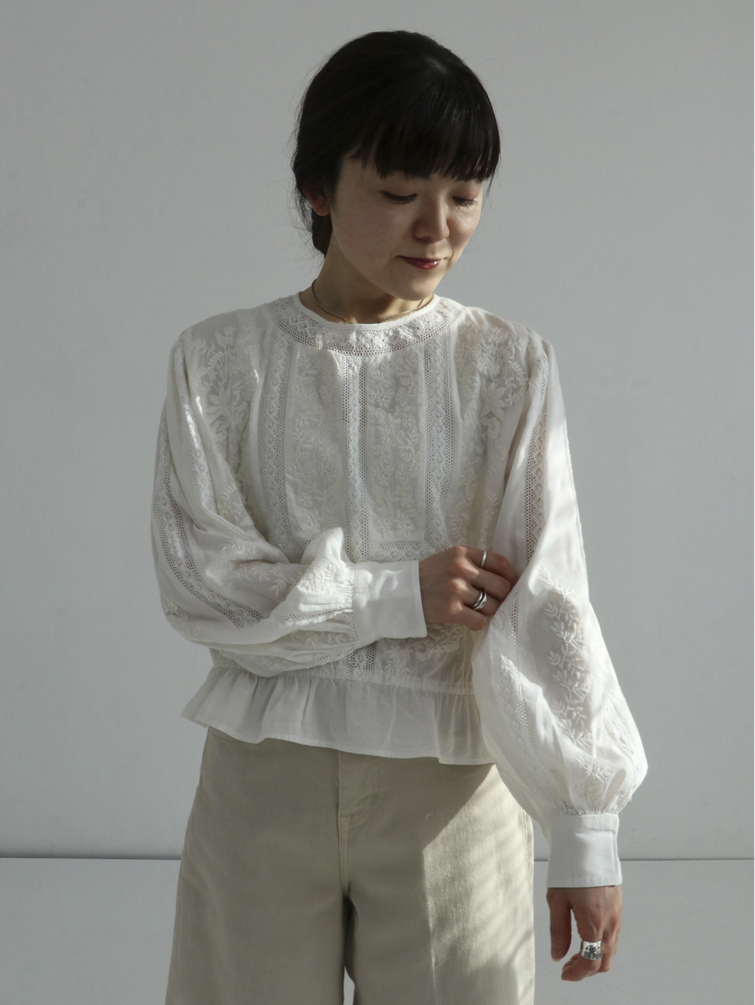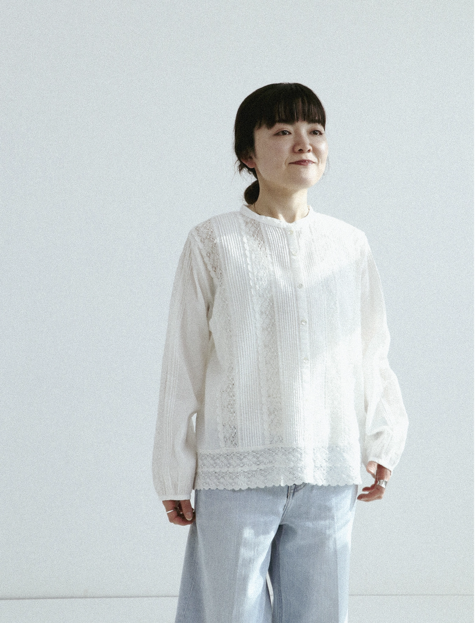 レースが特徴のブランド。 ナチュラルで優しい素材感に、 繊細で上品なディテールをプラスした大人の女性のための一着。