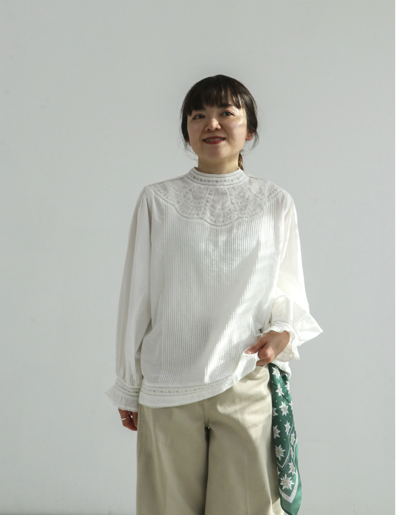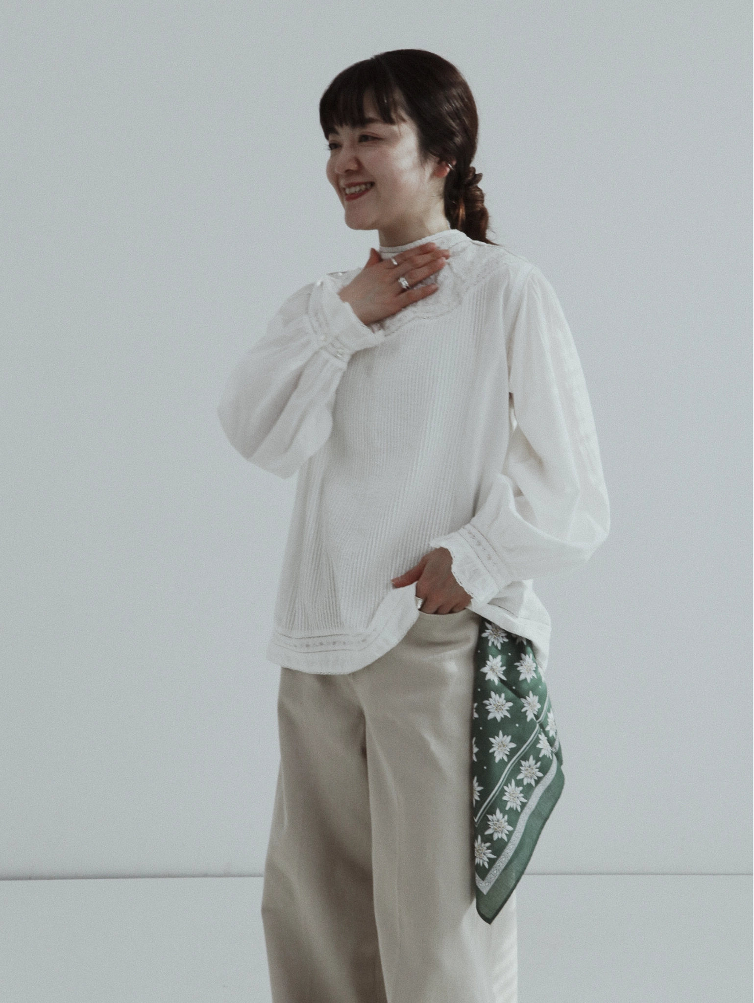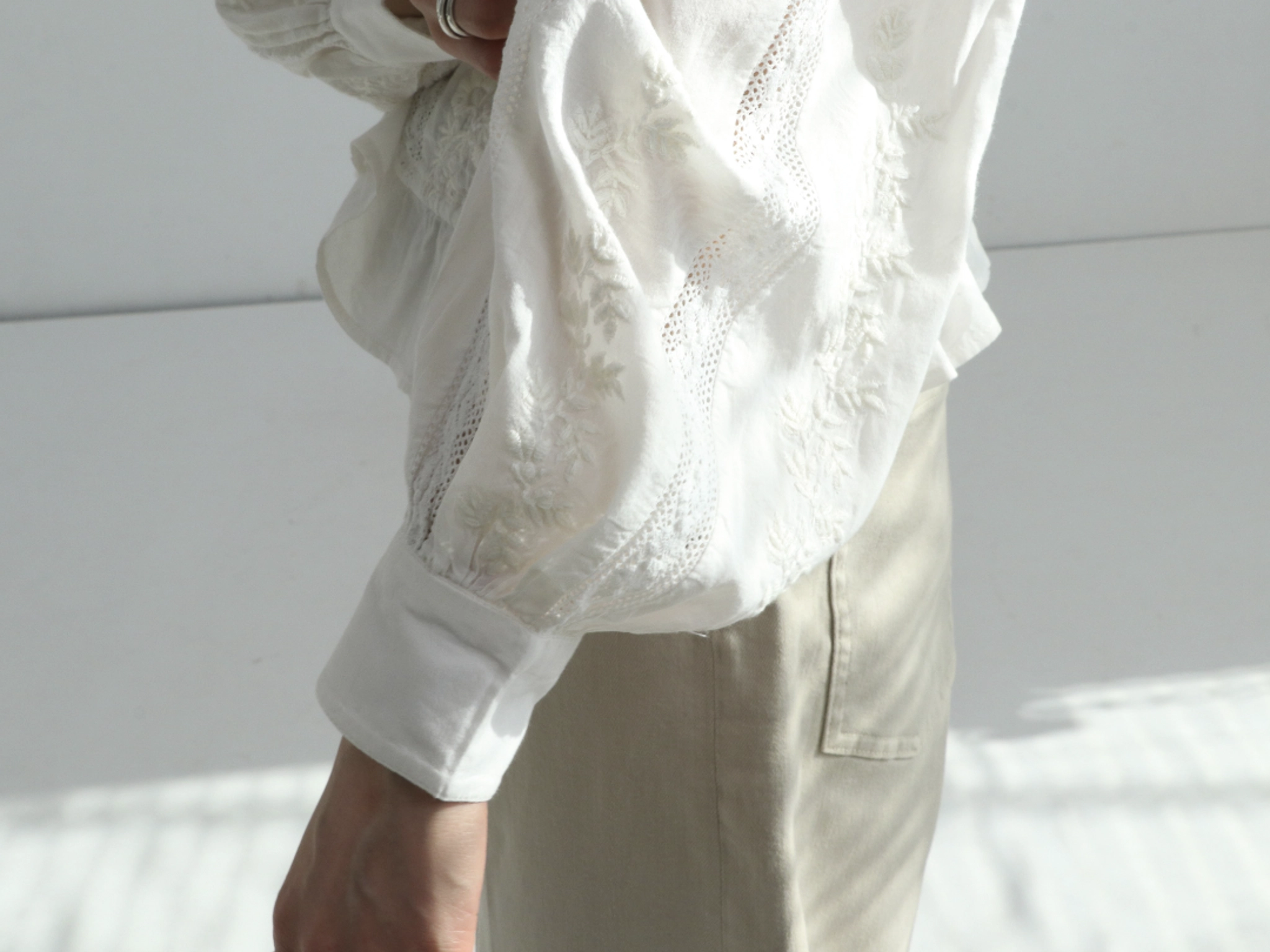 レースが特徴のブランド。 ナチュラルで優しい素材感に、 繊細で上品なディテールをプラスした大人の女性のための一着。