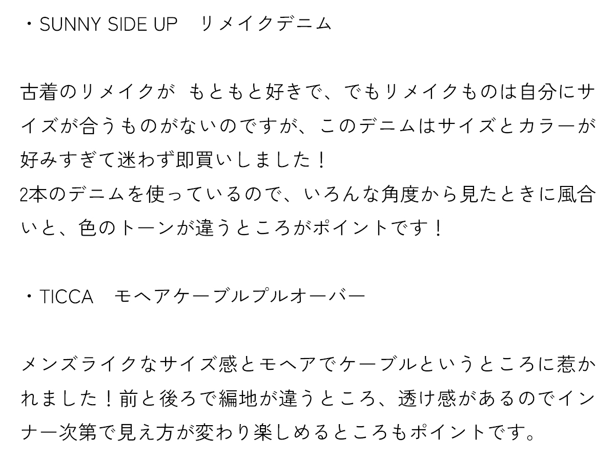 pants : SUNNY SIDE UP ¥19,800 店頭のみ