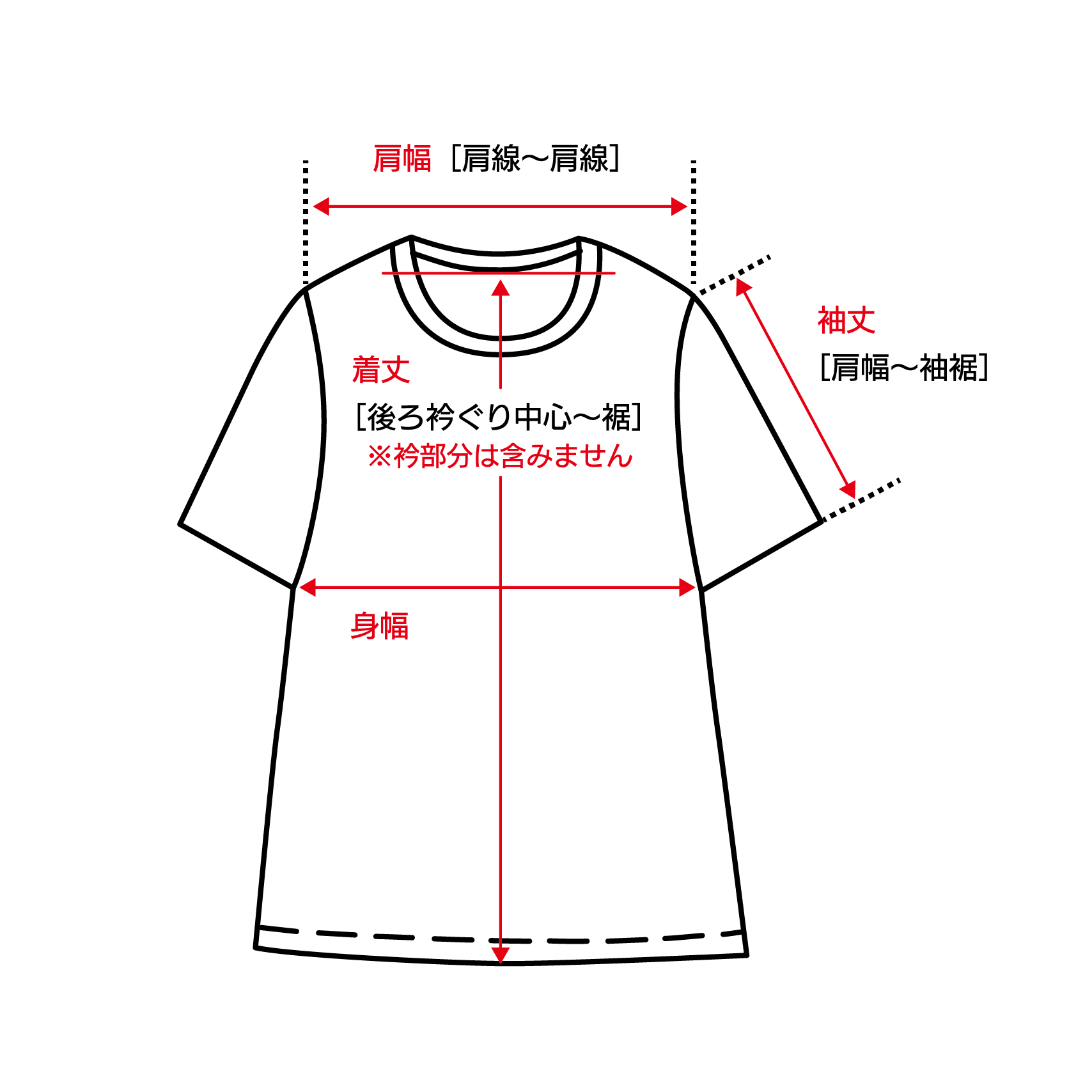 ・着丈・総丈に襟の長さは含まれません。