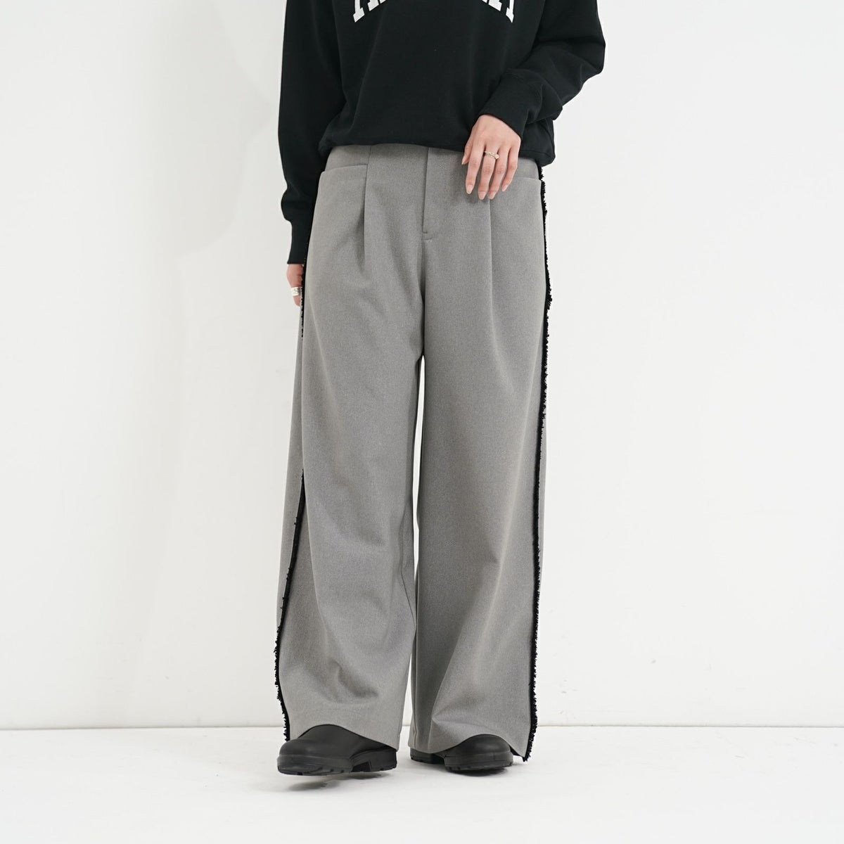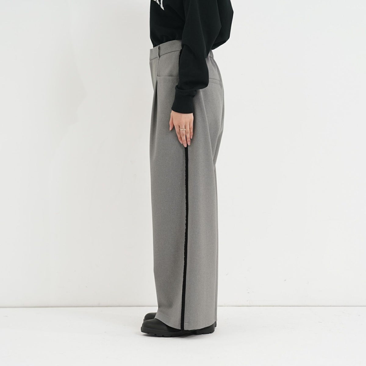 他の画像を見る Quatre meiange color@White color@Black color@Grey [ trois ] サイドフリンジワイドパンツデザインパンツ サイドライン 定価 ¥ 21,780 → 40%OFF ¥ 13,068 税込 カートに入れる お気に入りに登録する