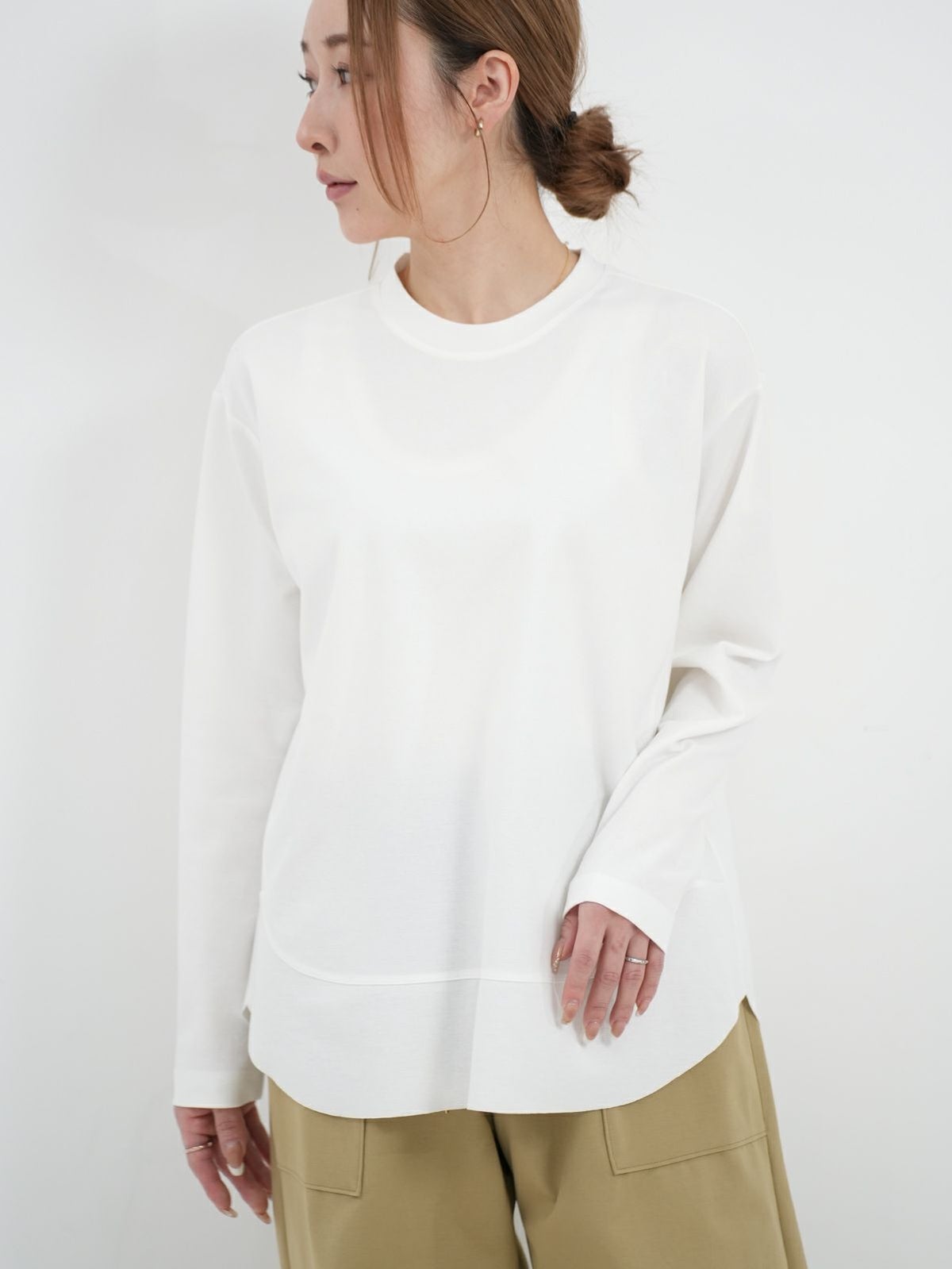 他の画像を見る Quatre meiange color@White color@Black color@Beige [ Dignite Collier ] 裾切替長袖Tシャツ ¥ 7,590 税込 カートに入れる お気に入りに登録する