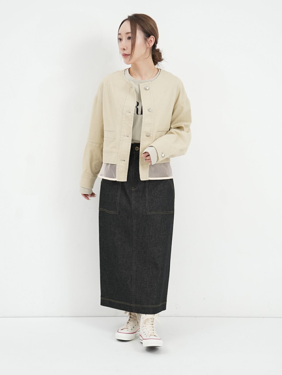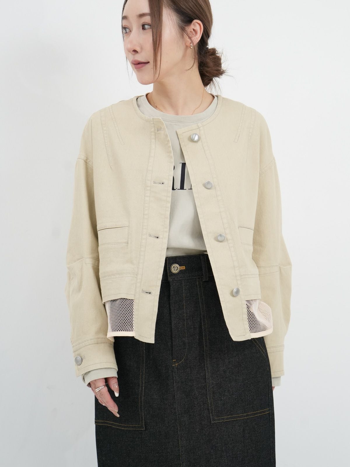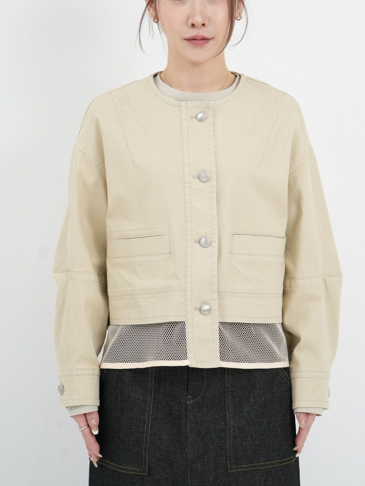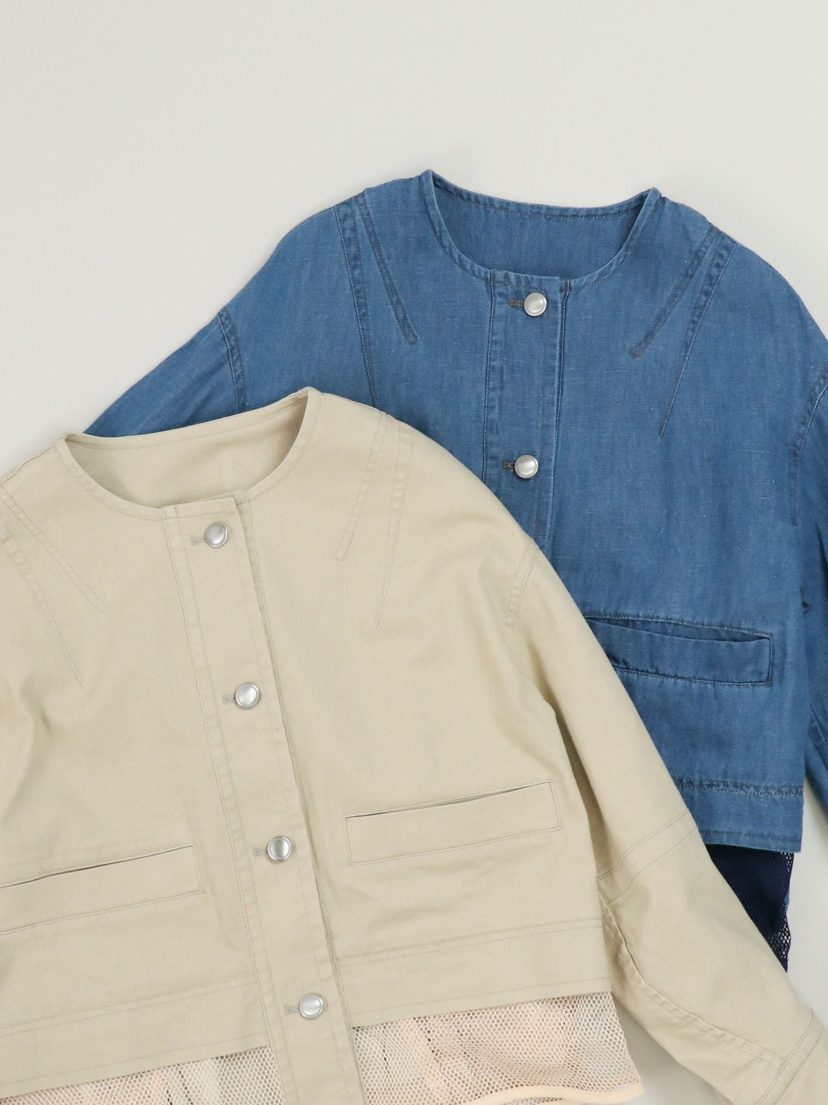 他の画像を見る Quatre meiange color@Beige color@Blue [ Lallia Mu ] メッシュデニムジャケット 定価 ¥ 26,400 → 40%OFF ¥ 15,840 税込 カートに入れる お気に入りに登録する
